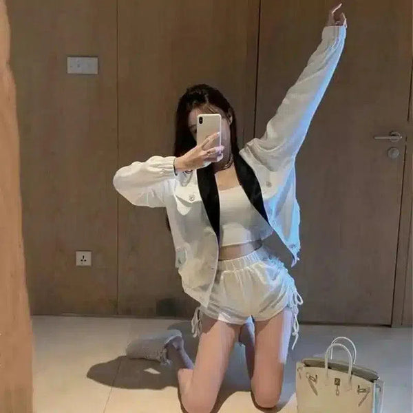- Fit of stretch: Met koordjes verstelbare taille bij shorts; loszittend jack