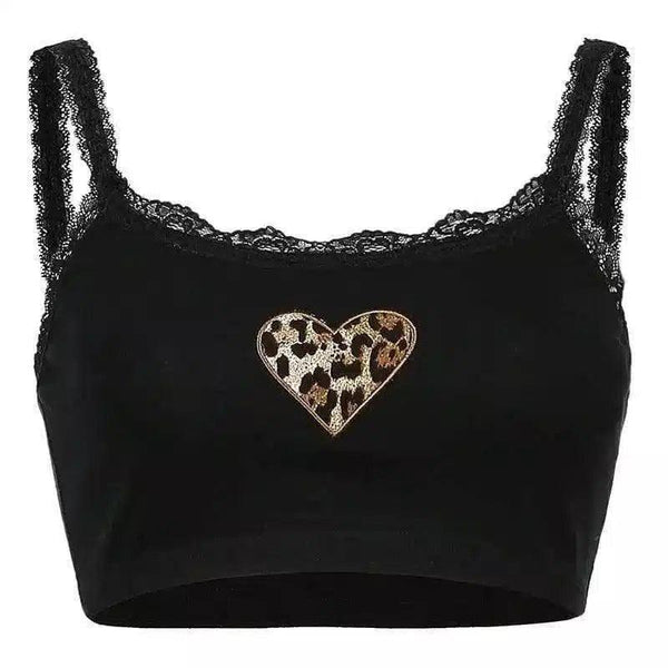 Met kant afgezette top met hartjesmotief