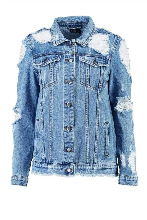 Spijkerjas met lange mouwen en grote gaten