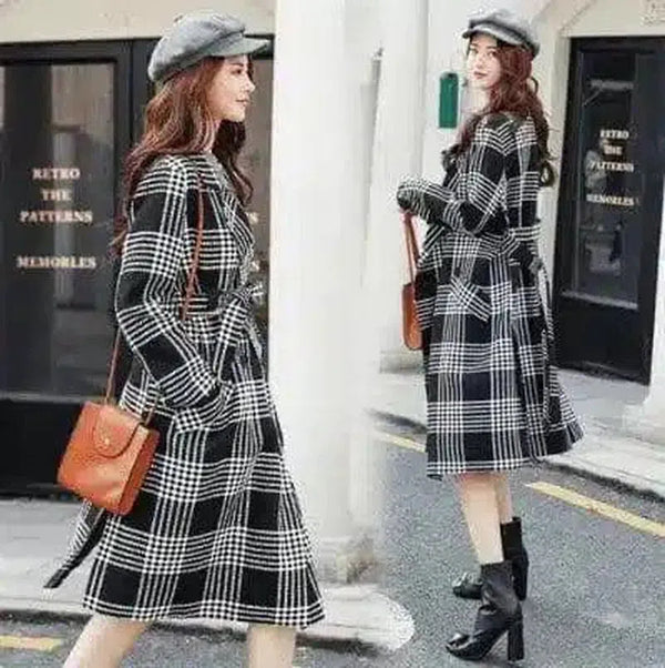 Geruite Midi Dress met Riem en Zakken