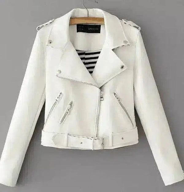 Neem deze witte kunstleren moto jas op in je garderobe om een vleugje elegantie en