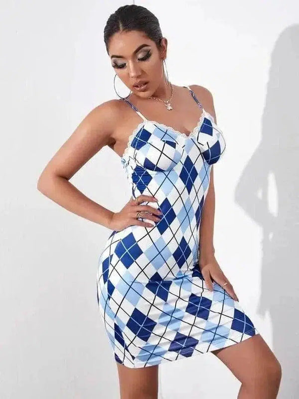 - Design: Gedurfd blauw en wit ruitpatroon