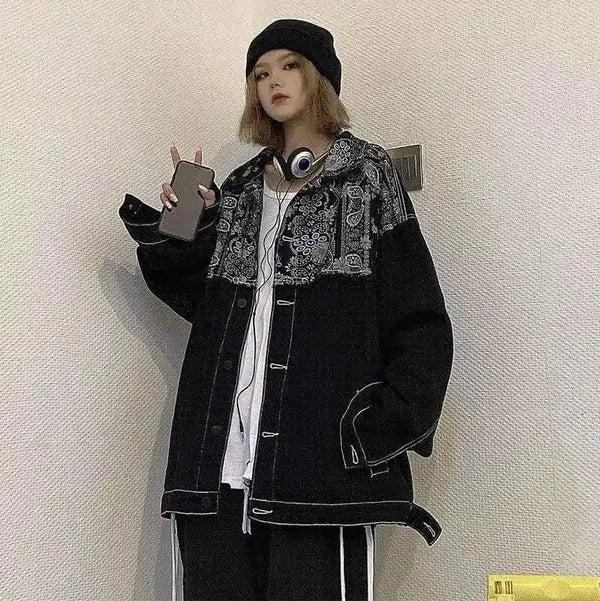 - Design details: Contrasterende paisley patroon op bovenste panelen, knoopsluiting aan de voorkant, en meerdere zakken
