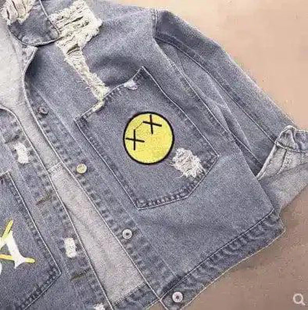 - Design Kenmerken: Gedurfde grafische patches en gerafelde accenten
