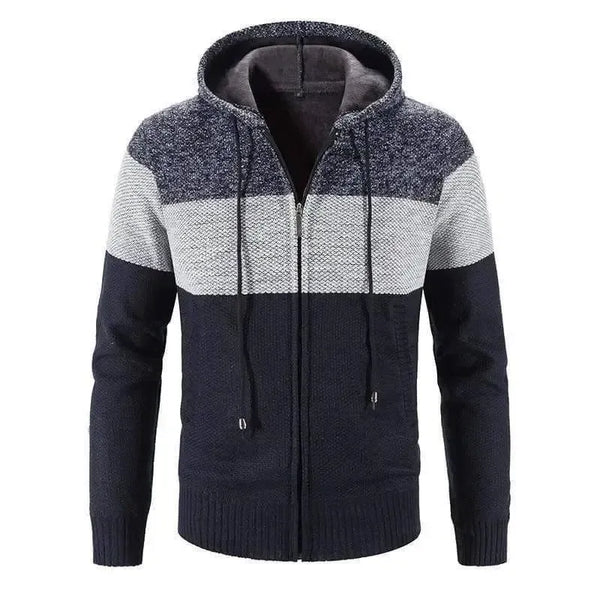Heren Trui Dikke Rits Wollen Truien Capuchon Streep Jas