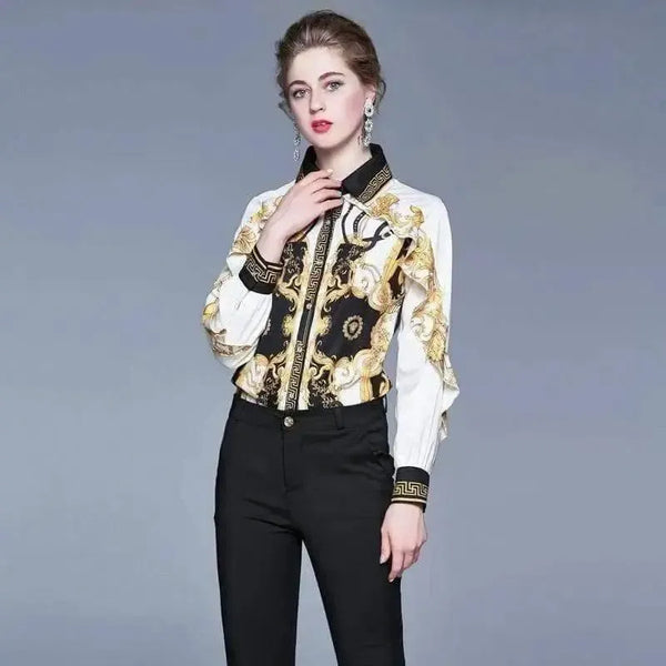Retro Palace Print Geraffeld Slim-fit Mode Overhemd