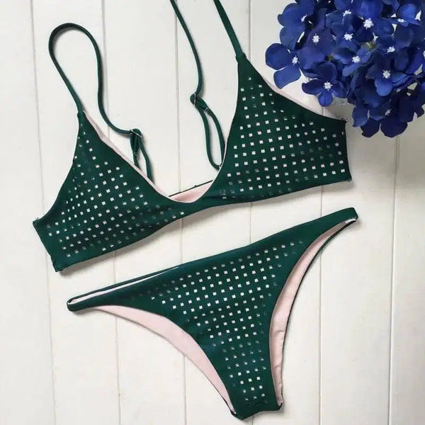 Groen Halter Spaghettibandjes Bikini Zwemkleding