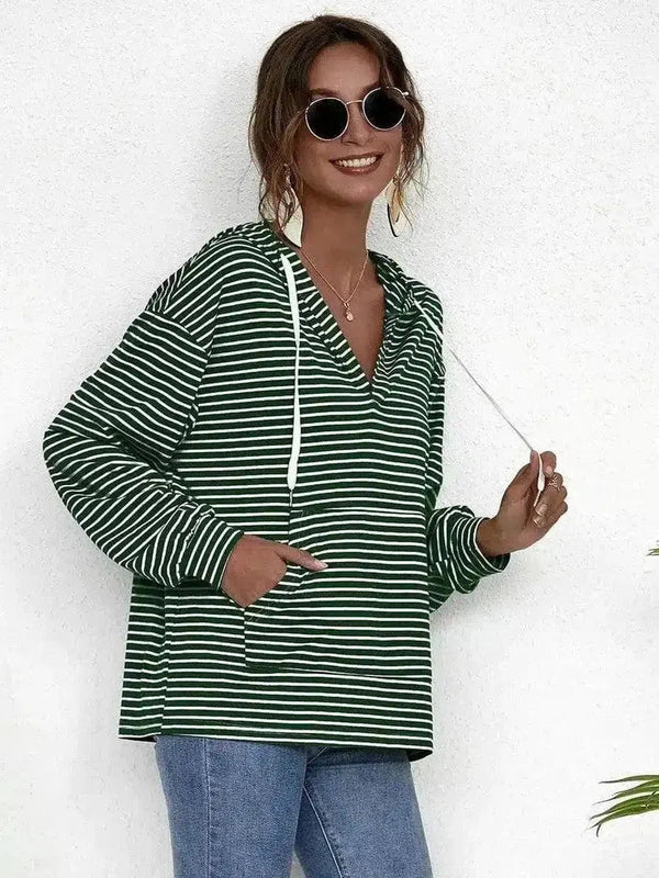 Gestreepte pullover met capuchon en zak aan de voorkant