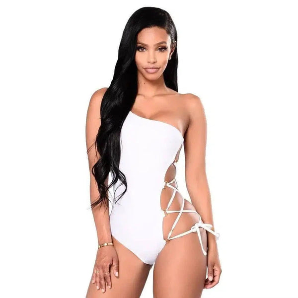 Productbeschrijving: One-Shoulder Bikini Zwempak met Hoepel Kruisband