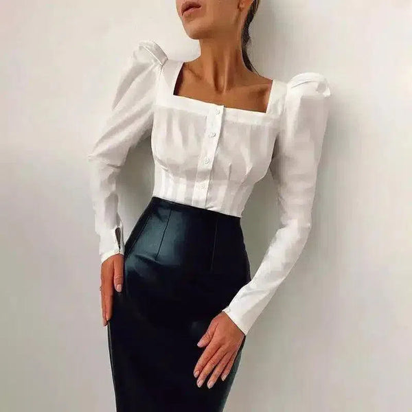 Vierkante Hals Blouse met Pofmouw
