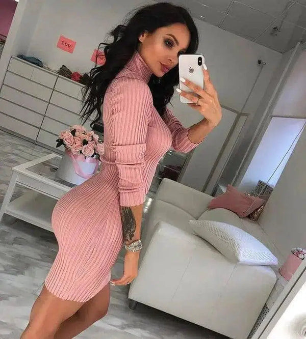 Productomschrijving: Turtleneck Slim Long Sleeve Dress