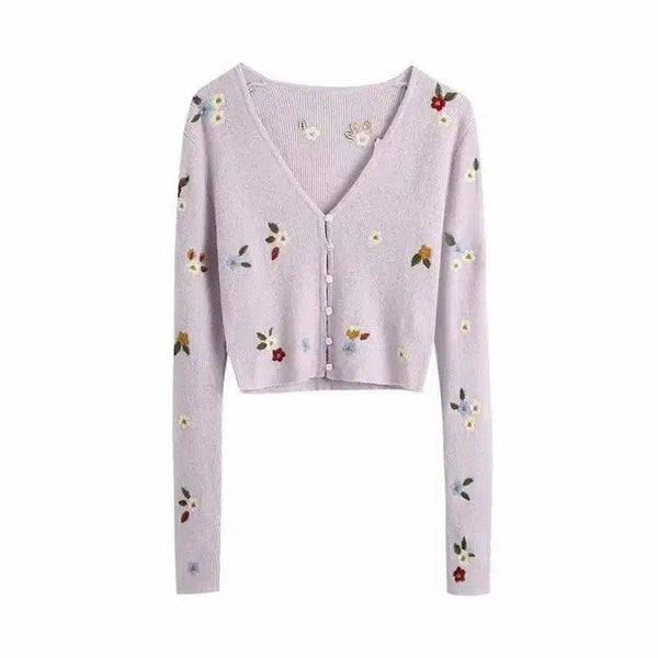 Geborduurd V-Hals Vest met bloemen