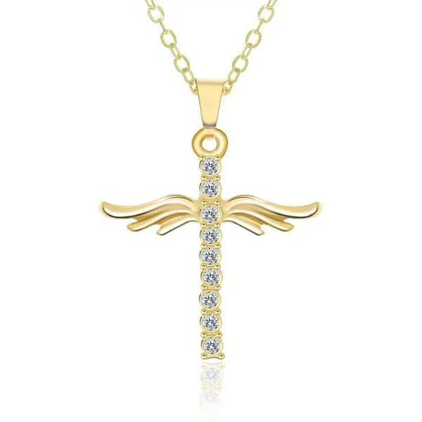 Eenvoudig Kruis Diamant Engel Vleugels Hanger
