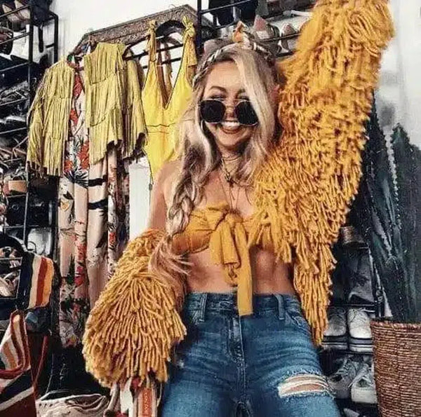 - Mouwen Mouwlengte: Lange mouwen met uitgebreide franje details