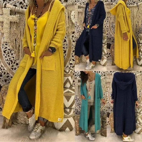 Lang gebreid vest met capuchon voor dames