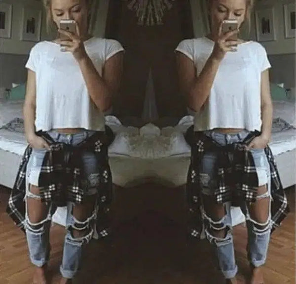 - Stijl: Trendy rechte jeans met een modern gaatjesontwerp