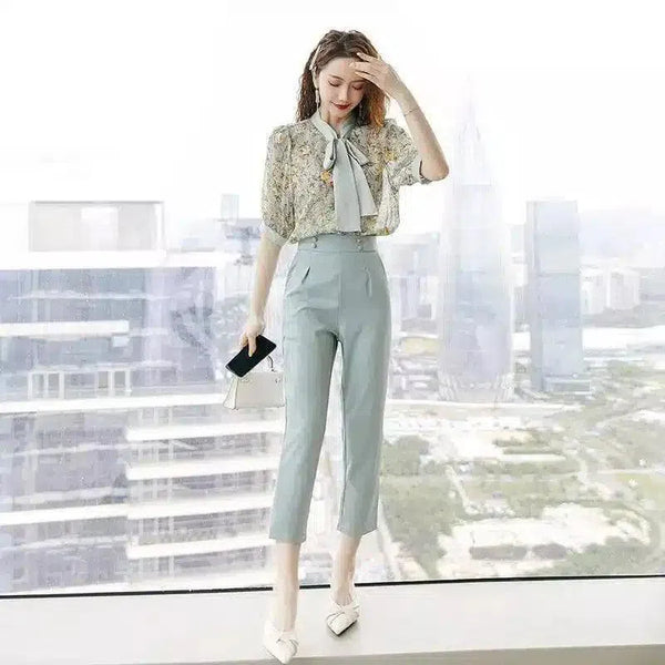 Dames Elegante Blouse met Stropdashals & Korte Broek