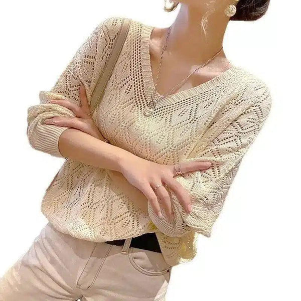 Gebreide dames trui met V-hals
