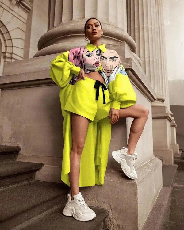 - Aanvullende details: Grafisch ontwerp op de voorkant, gespleten zoom die uitloopt in een hoog-laag silhouet