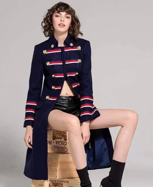 Vintage Fashion Gestreepte Metalen Knoop Blauw Punk/Militair Lang