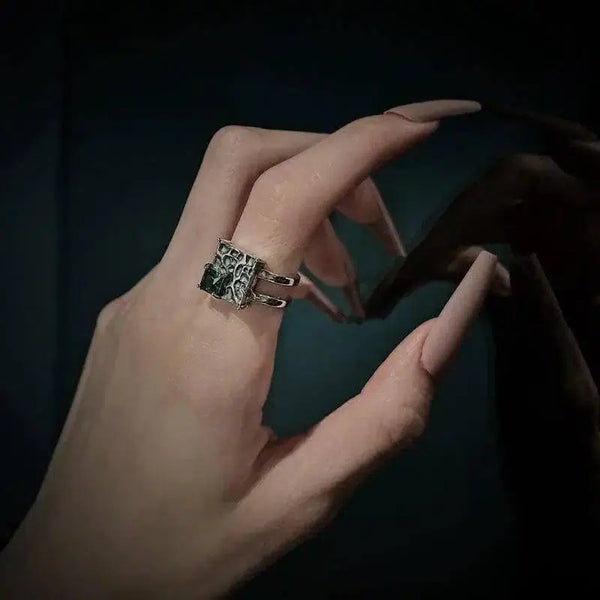 Vintage Zilveren Vierkant Donkergroen Diamant S925 Sterling
