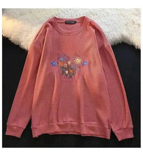 Geborduurde Crew Neck Sweater met lange mouwen