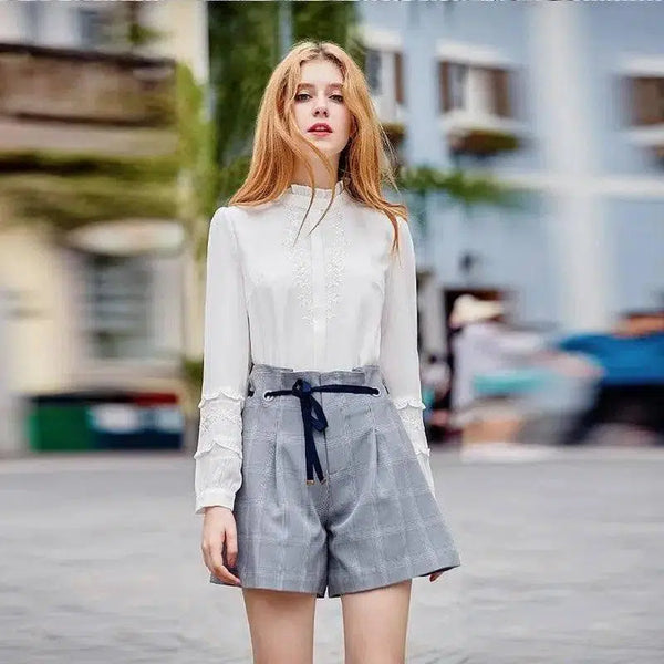 Dames geruite wijde dij shorts