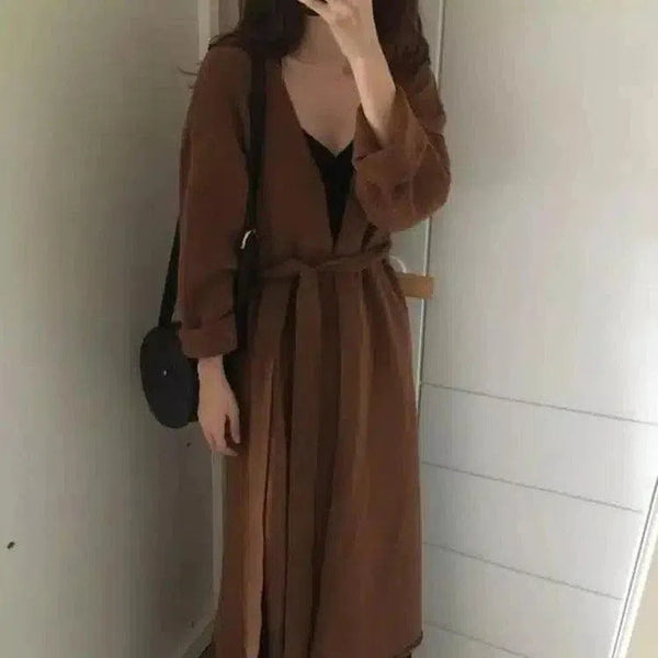 Maxi jurk met lange mouwen en riem voor dames