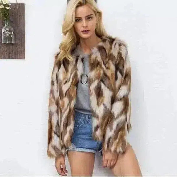 - Luxurious Faux Fur Coat: Verhoog je wintergarderobe met deze prachtige jas van imitatiebont, met een pluchen materiaal dat elegantie en warmte uitstraalt.