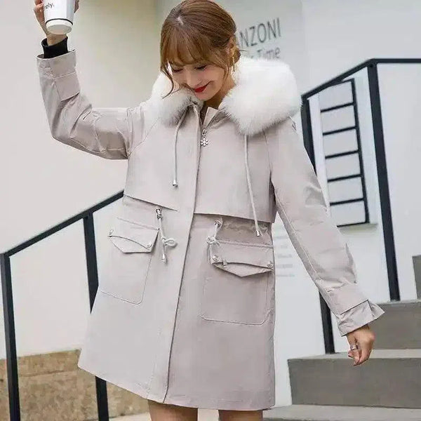 - Lieve kraag van imitatiebont: Met een pluche kraag van imitatiebont die warmte en een chique esthetiek toevoegt, perfect voor frisse dagen.