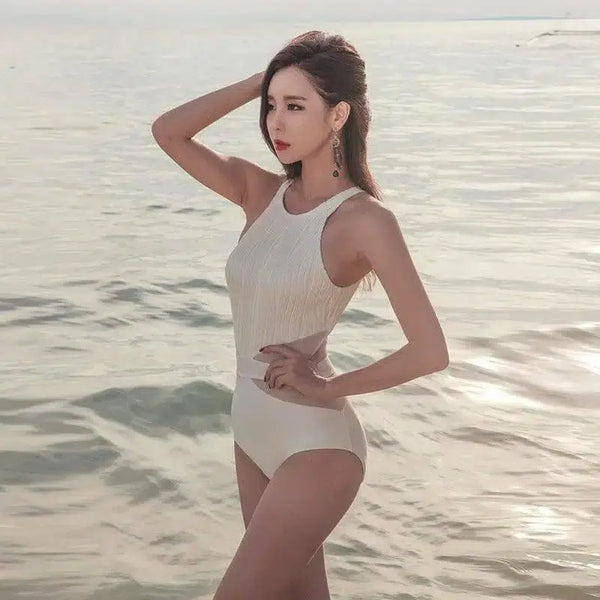 - Design: Vrouwelijk eendelig badpak met gerimpelde details