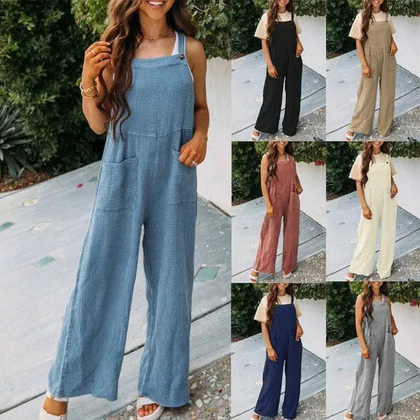 Fashion Jumpsuit met vierkante hals en zakken Lente Zomer Casual Solid Color Losse Overalls Vrouwenkleding