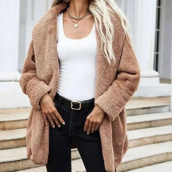 Bruin pluchen vest met lange mouwen Trendy Dubbelzijdig