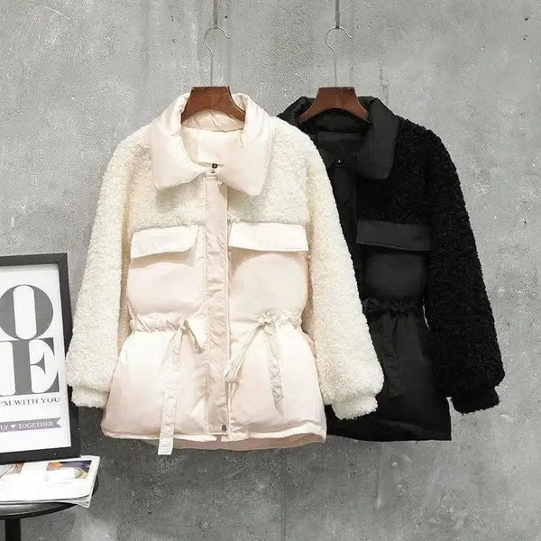 Lamswollen gestikte katoenen jas