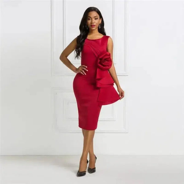 Roos avondjurk met ruches