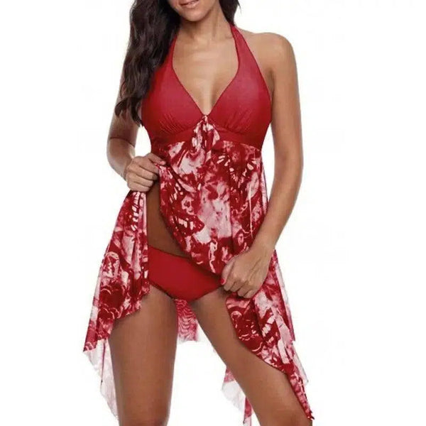 Productomschrijving: Bikini Irregular Hem Split Floral Badpak
