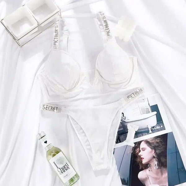 Productomschrijving: Push Up Deep V Letter Rhinestones Bra Set Vrouwen