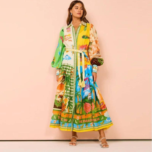Enkelrijige lange lantaarnmouw met graffiti-opdruk