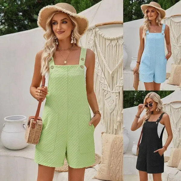 Lieve wafel jumpsuit meisjes zomer mouwloze knoop ontwerp rechte effen kleur overalls mode dameskleding