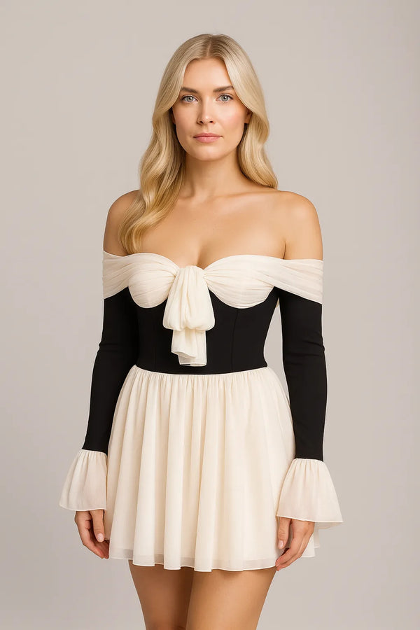 Productbeschrijving: Women's Off-shoulder Color-matching Dress