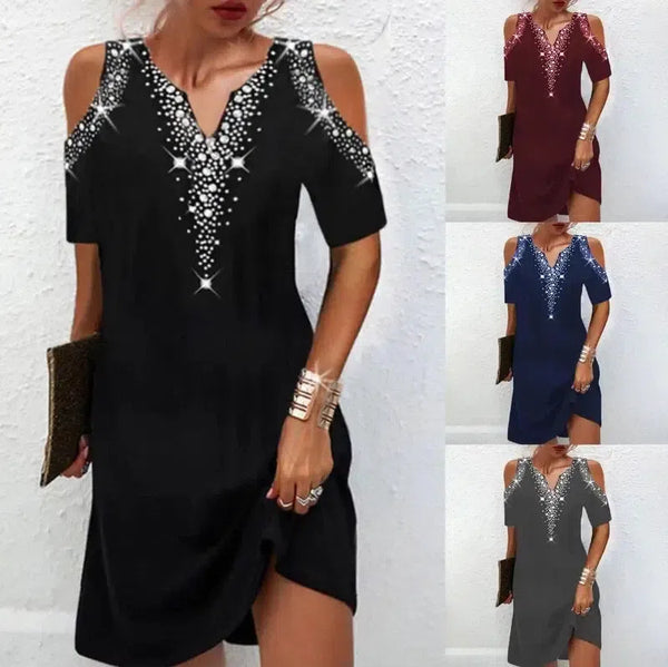 Vrouwen V-hals Off Shoulder Gedrukte Korte Mouw Jurk