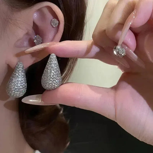 Fashion sieraden vintage dikke koepel Drop oorbellen voor vrouwen glanzend roestvrij staal dikke zirkoon ingelegd teardrop oorbellen vrouwen