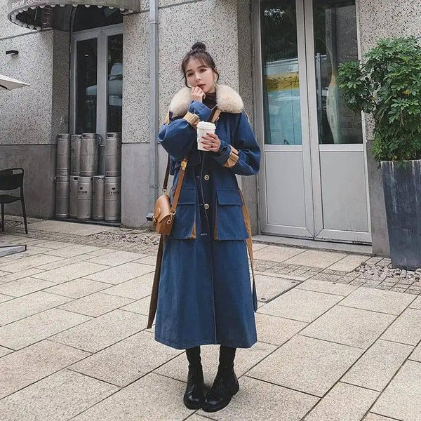 Productbeschrijving: Women's Long Tooling Pie Overcoming Loose Plus Fleece Coat