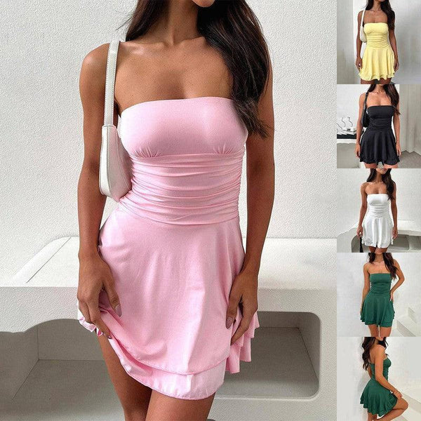 Y2K Tube-top korte jurk Zomer geplooide strakke jurken