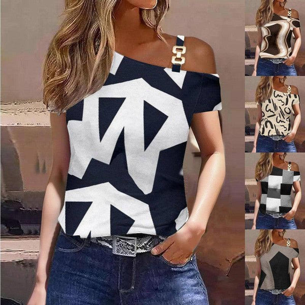 Dames zomer eenvoud met korte mouwen en metalen gesp bedrukt